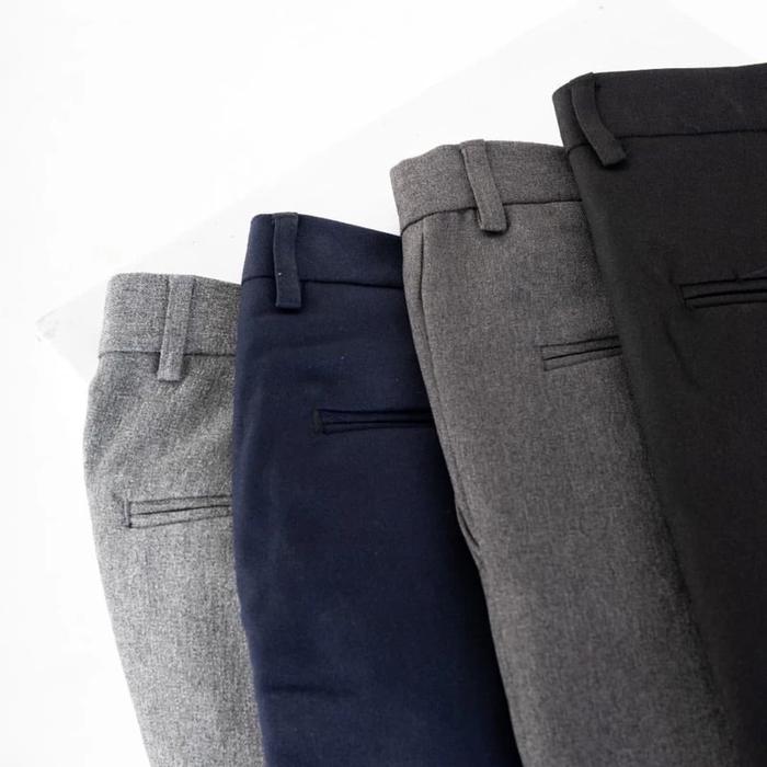 Celana Kantor Formal Pria Slim Fit Mallvose - Bahan Wool Berkualitas Tinggi - Abu, Hitam - Abu Tua, 27