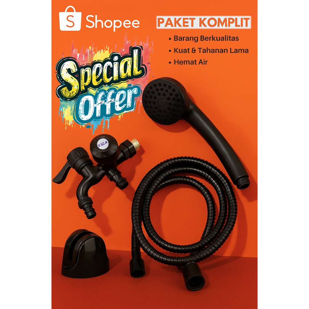 Paket Shower Set Elegan – Kepala Shower + Selang + Kran + Dudukan | ESCA