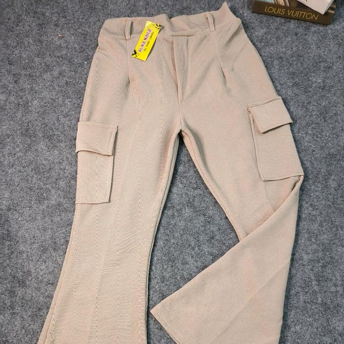 Thalita _ Celana Cutbray Cargo Wanita _ Cutbray Viral _ Kekinian _ Casual - Hitam