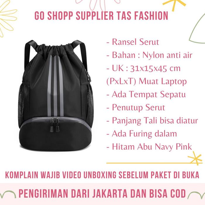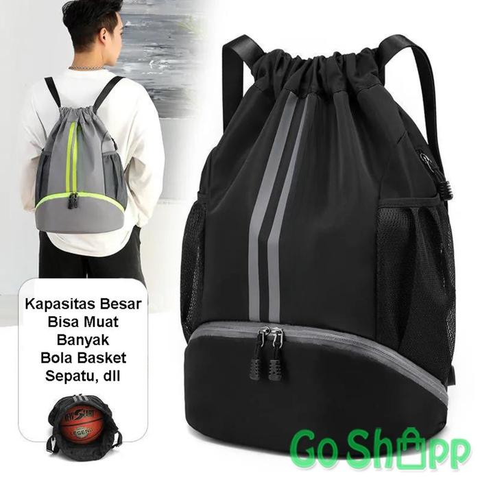 Tas Ransel Serut Unisex Waterproof Multifungsi Backpack Olahraga Gym Futsal Basket Travelling Bk34 - Bk34-Hitam