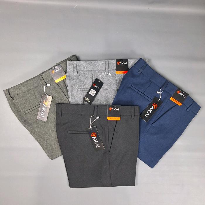 Takai - Celana Bahan Pria Celana Panjang Pria Slimfit Low Waist Polos Terlaris Abu Hitam Biru Formal - Hitam, 27