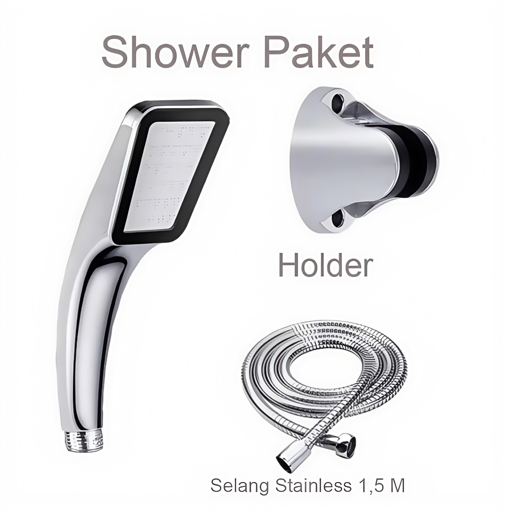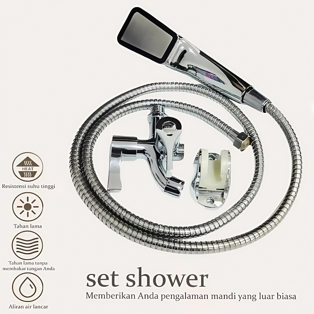 Shower Set Luxury 4 in 1 - Kran Cabang Stainless Steel 304 Tahan Karat, Shower Head High Pressure dengan Selang Pre