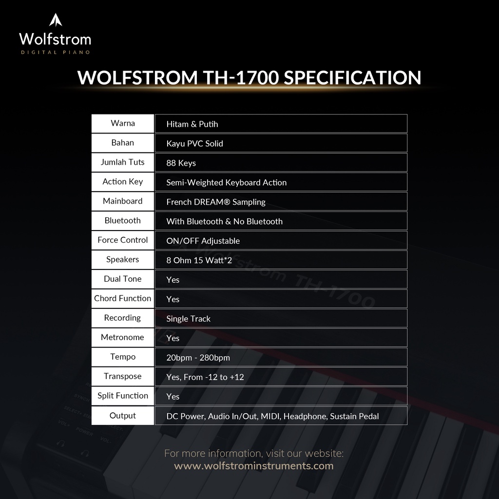 Wolfstrom Th-1700 Digital Piano Keyboard Elektrik 88 Keys