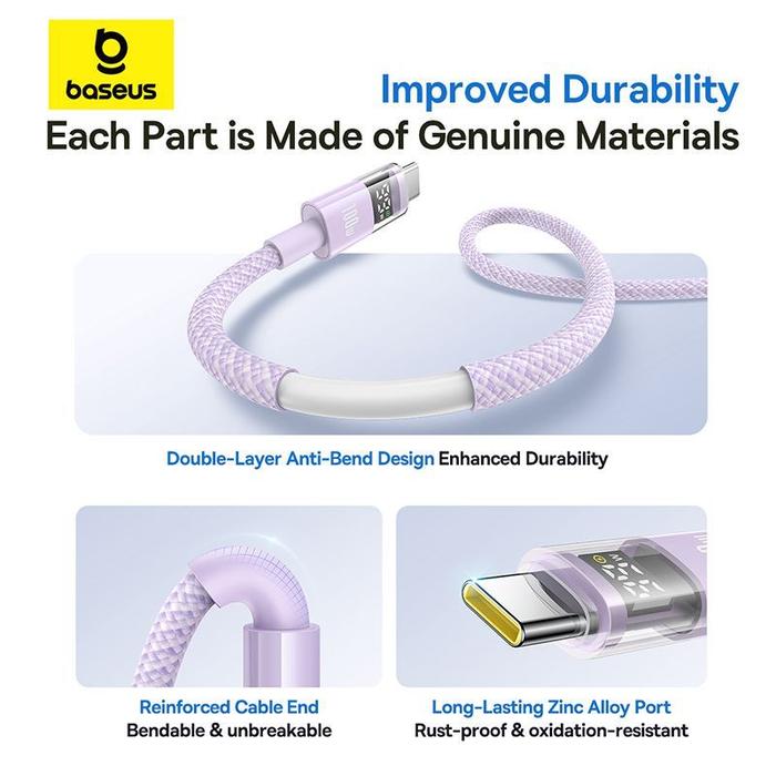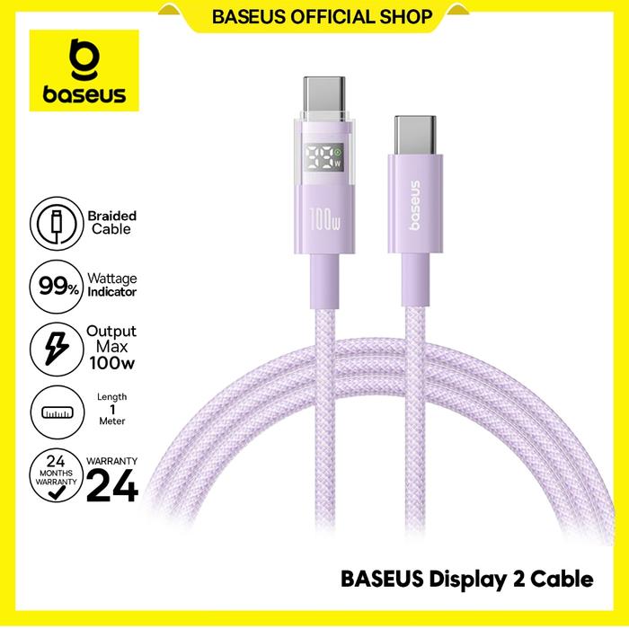 Baseus Cable Data 100W Type-C To Type-C Indikator Display Charging Kabel Data Fast Charging - White 1M