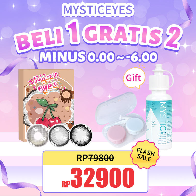Minus(05.00)Mysticeyes softlens 3 Item Paket kombinasi set:1 pair Softlens Normal +Air Pencuci Softlens 60ml + Tra