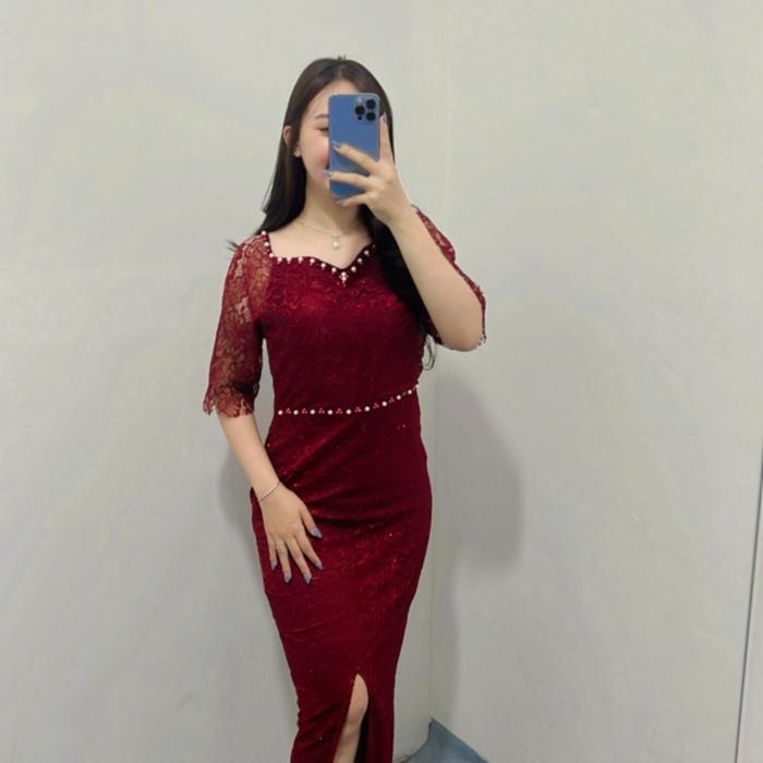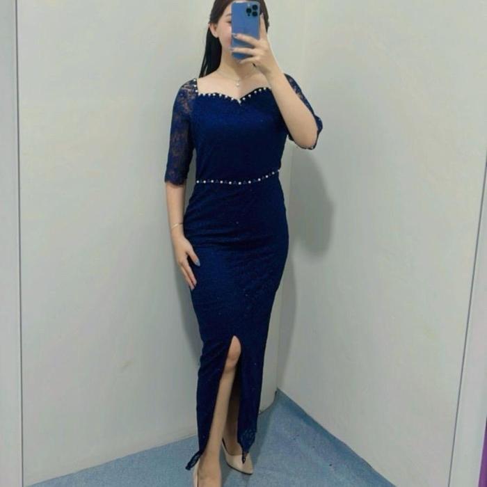 Dress Brukat Feli New Model 2026 Gaun Mewah Panjang Untuk Kondangan & Pesta Bahan Brukat Premium & Satin Velvet Elegan D