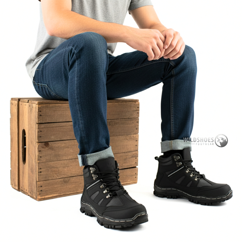 Sepatu Safety Pria Ujung Besi - Sepatu Boots Pria Septi Outdoor Tracking Hiking Adventure Proyek - Wildshoes Offici