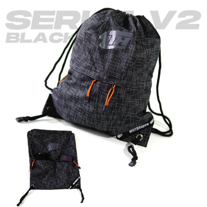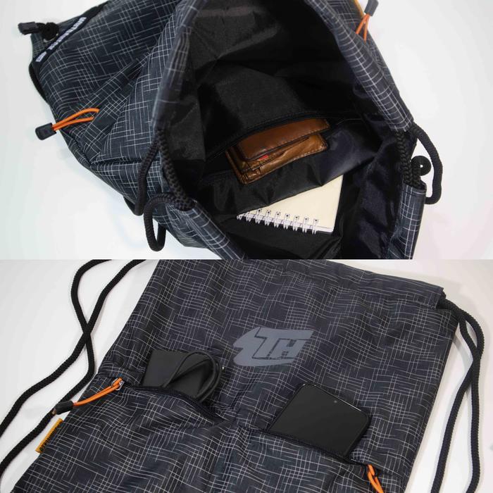 Tas Serut/Drawstring Backpack Wutdaheck V2 Dengan Puring - Hitam - Orange