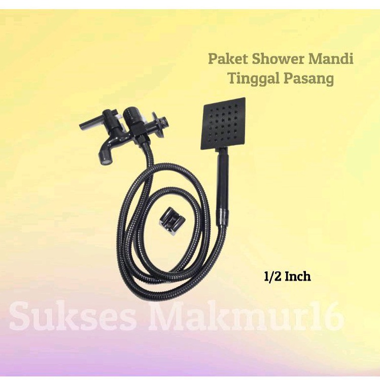 paket shower stainless hitam + kran cabang PROMO TERMURAH