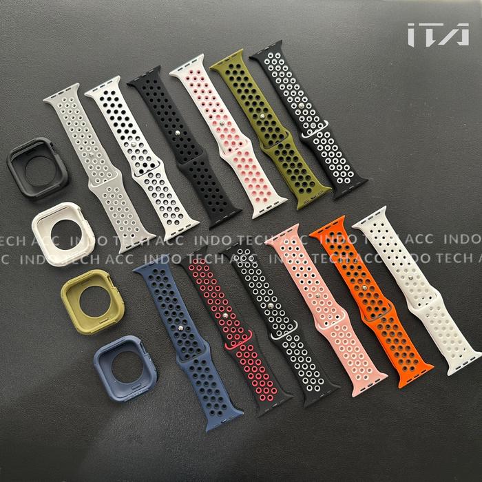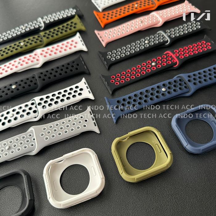 Case Strap Rubber For Apple Watch Series Ultra 3/2/1 & Series 11/10/9/8/7/6/5/4/3/2/1/Se3/Se2/Se1 Case Rugged Armor + St