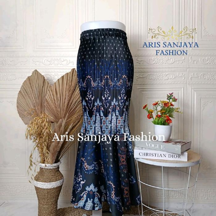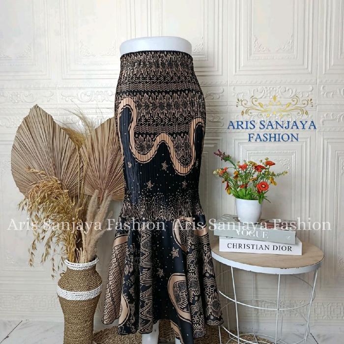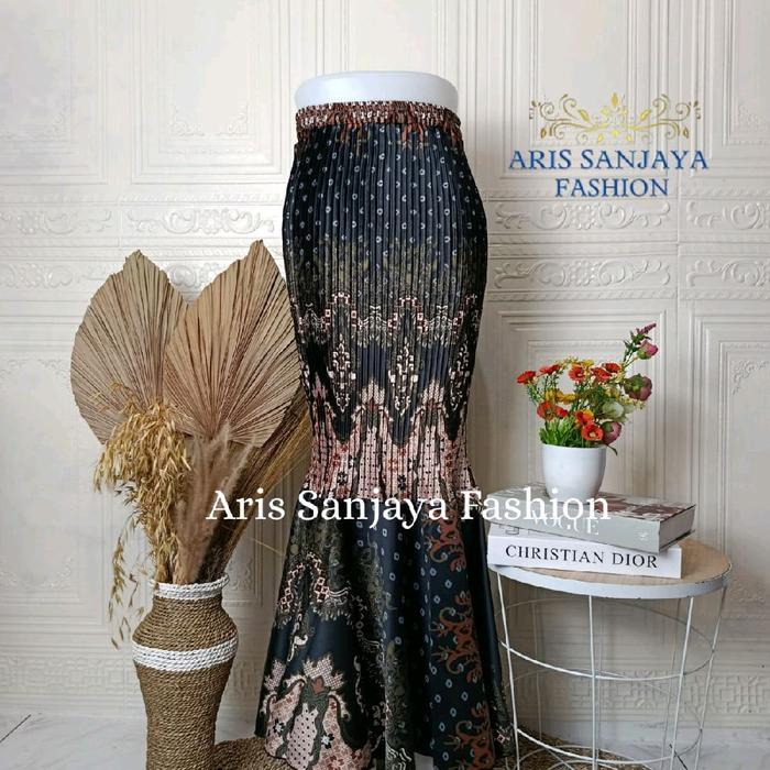 Rok Batik Plisket Duyung/Rok Pesta/Rok Wisuda Bawahan Wanita Panjang Semi Kebaya Span Kondangan Hitam Silk Nyaman