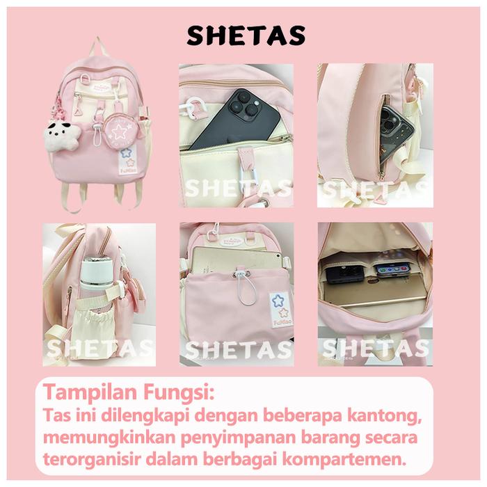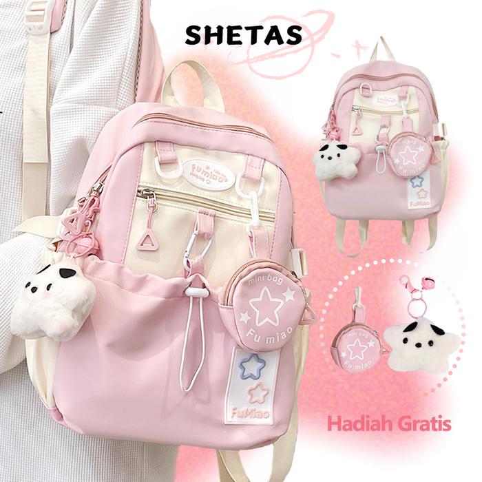 Shetas Tas Sekolah Wanita Lucu Warna Pink, Biru & Kuning + Gratis Sampel | Ransel Serut Kapasitas Besar, Multifungsi & M