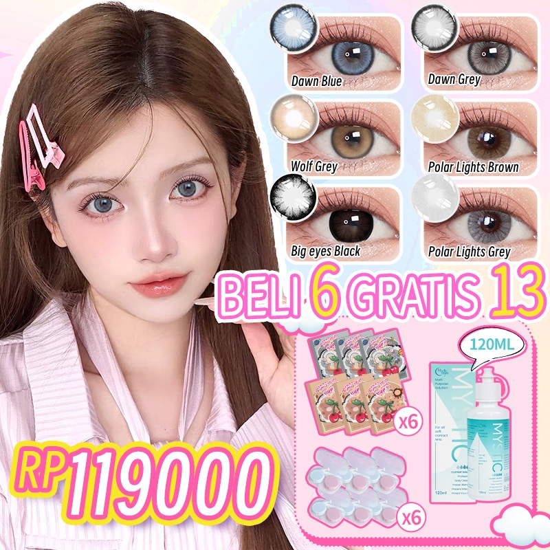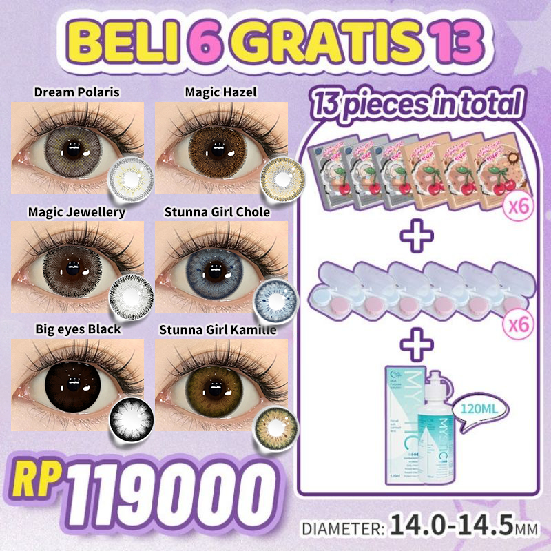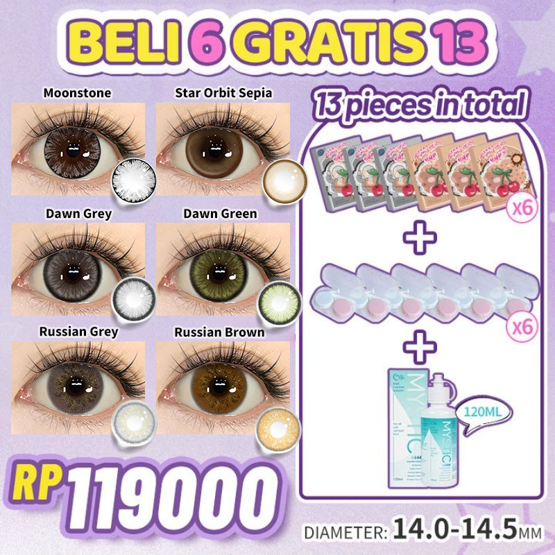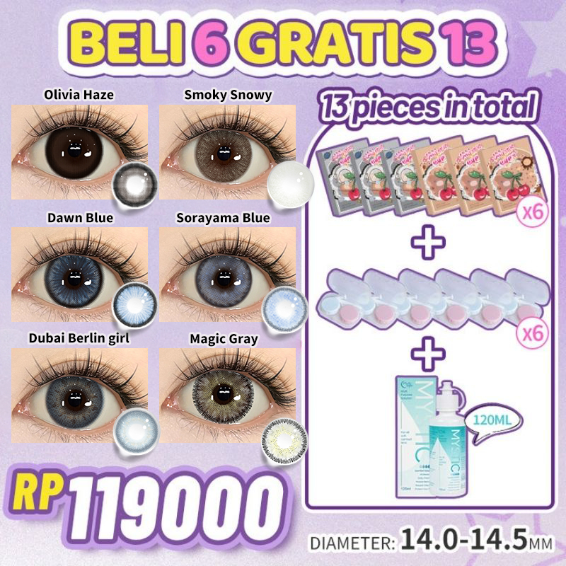 [beli 6 dapat 13] Mysticeyes Softlens Normal Big Eyes 14.0mm-14.5mm 6 Pasang softlens+6 lenscase+Air Softlens 120ml