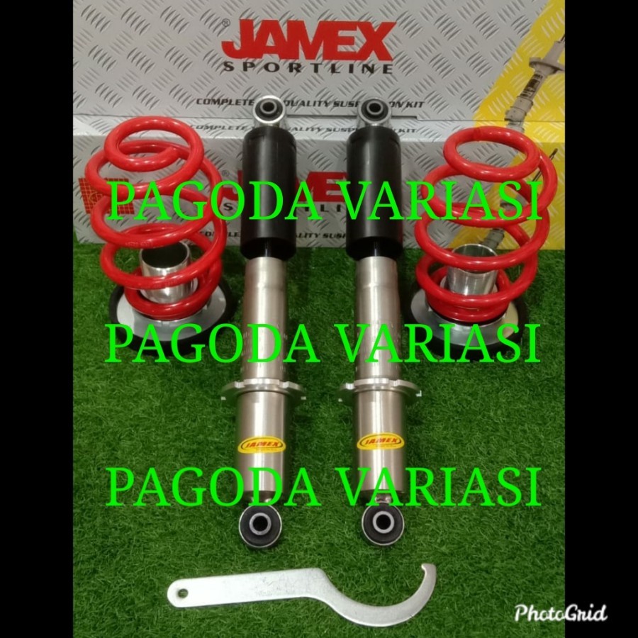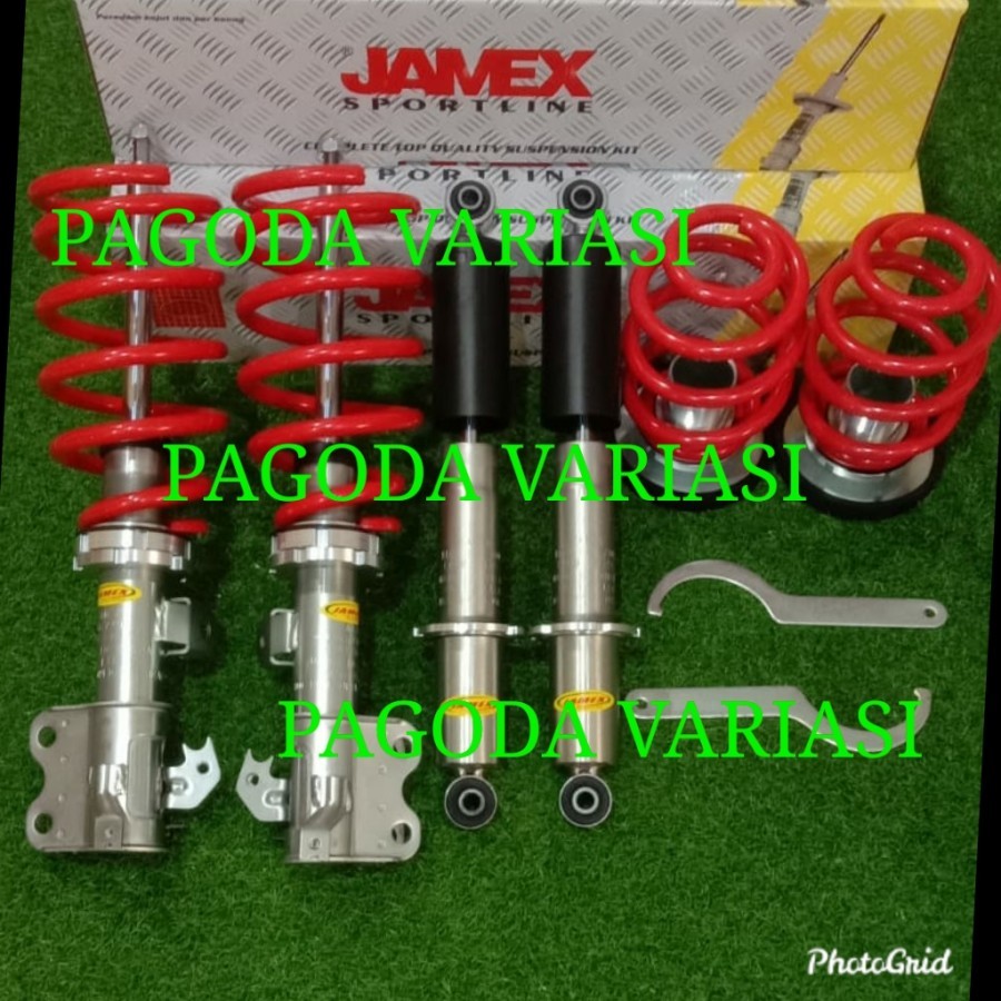 Paket Shock Coil Over Jamex Premium Adjustable Ceper/Std Avanza / Veloz Depan-Belakang 8Pcs Model Stell Drat Body Shift