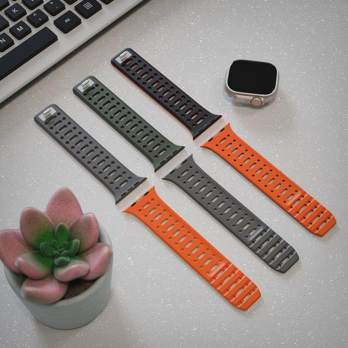Strap Apple Watch Magnetic Silicone Band Loop Tali Jam Iwatch 4 5 6 7 8 9 Ultra/ Ultra 2 - 42/44/45/49Mm - Black Gray