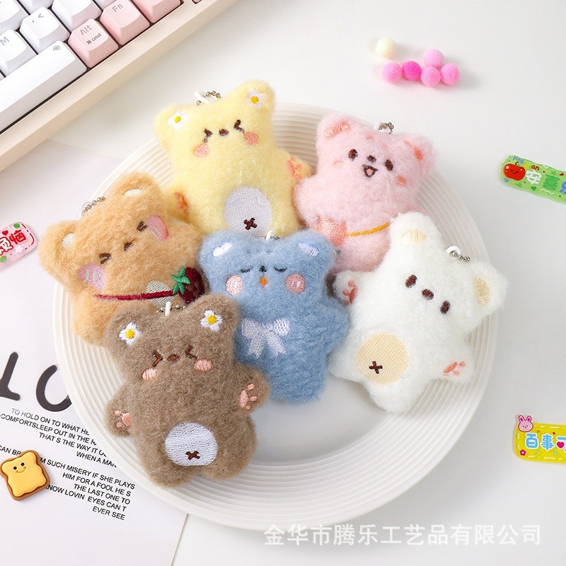 NGZ Gantungan Kunci Tas Hiasan Boneka Beruang dengan Bulu Lembut Berbunyi Keychain Boneka Fluffy Aksesoris Gantungan Tas