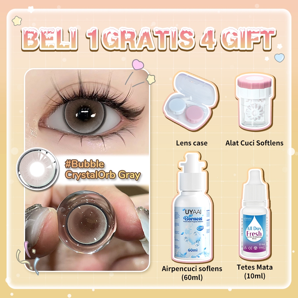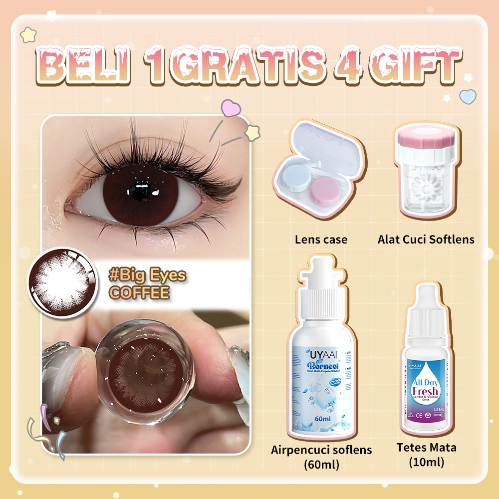 UYAAI Softlens Beli 1 Gratis 2 Mata Lensa Kontak (Normal):1 Sepasang Lensa Kontak 6 Bulan+Air Softlens 60ml+Eyedrop