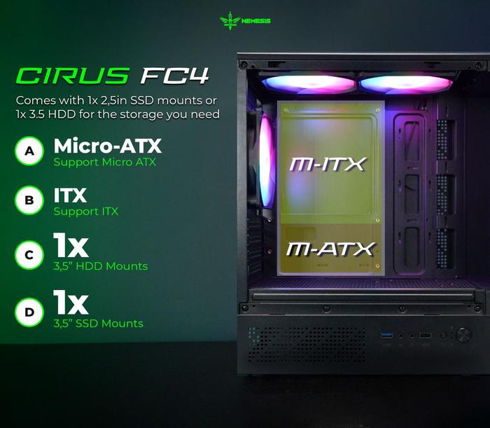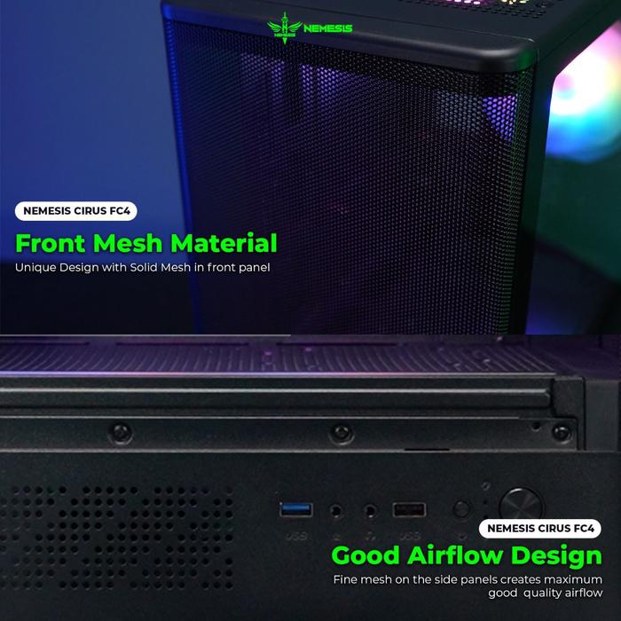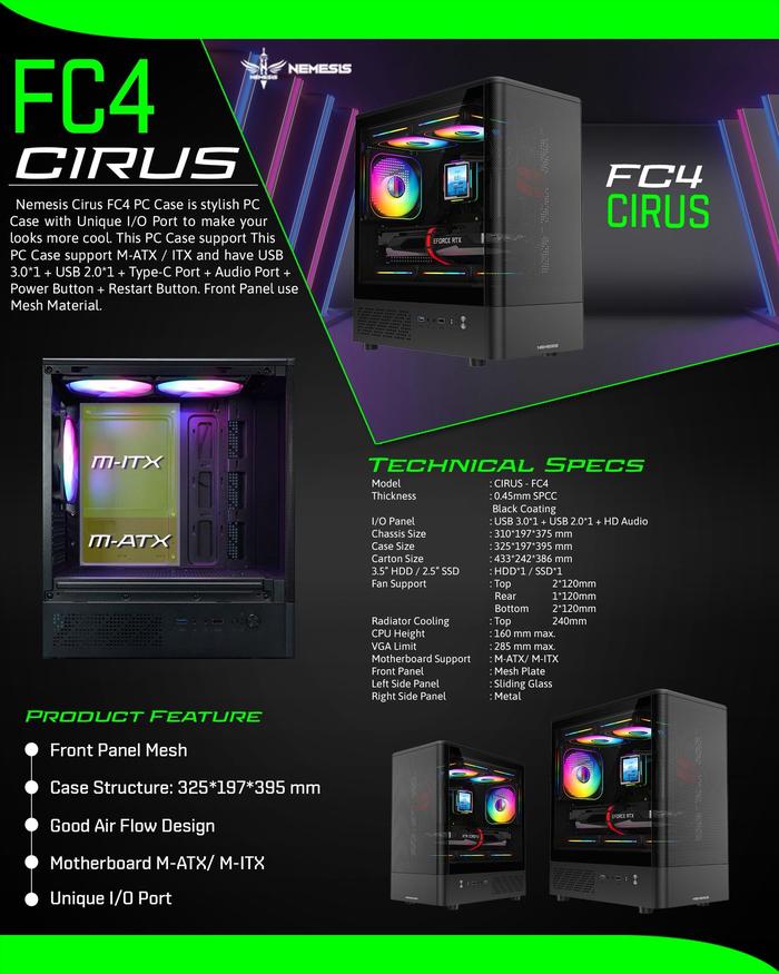 Casing Pc Nyk Nemesis Cirus Fc4 Pc Case M-Atx M-Itx Free 3 Fan Rgb
