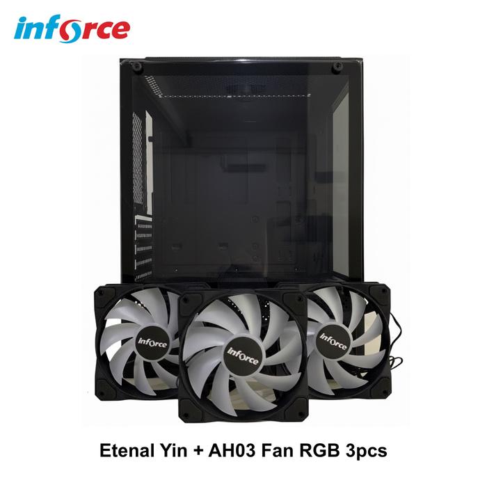 Inforce Pc Gaming Case Eternal Tempered Glass Black / White + 3 Fan - Yin