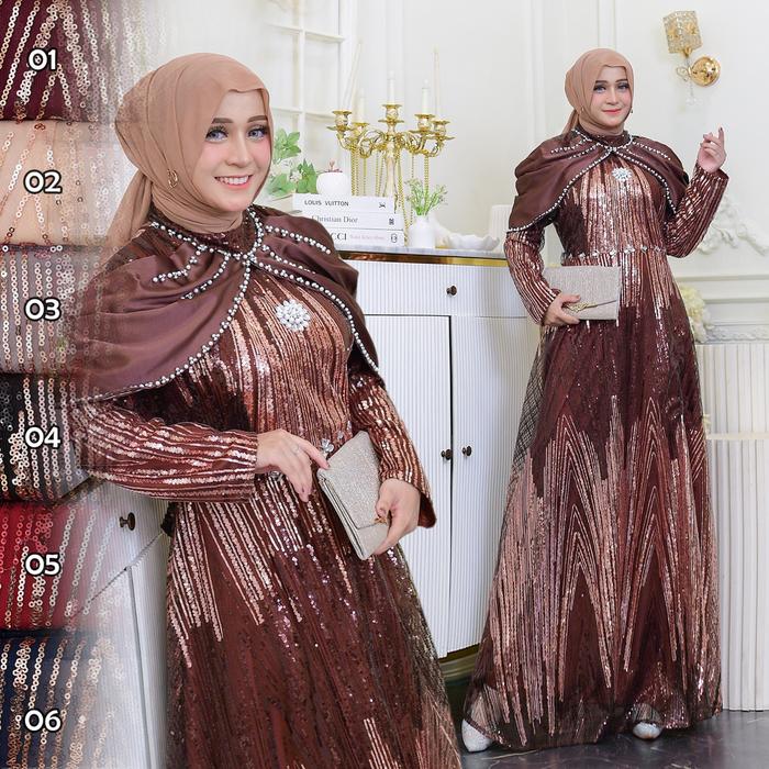 Kemilau Official Gaun Adiva All Size Ld 108 - Dress Wanita Busana Muslim Kondangan Pesta Brukat Full Organza Mix Brukat