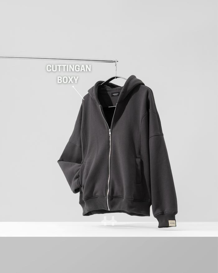 Hoodie.In Hoodie Zipper Cotton/Katun Seamless Boxy Limited Edition – Unisex Pria/Wanita - Deep Black, M