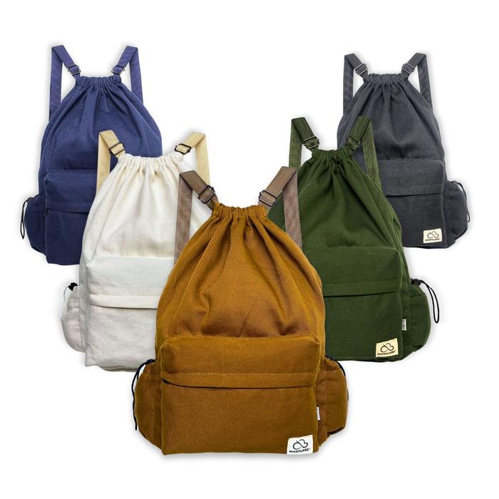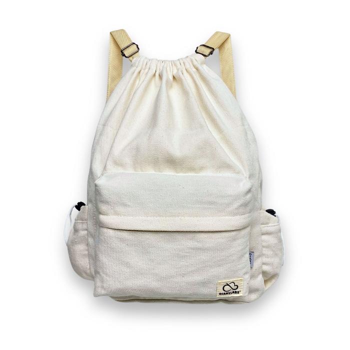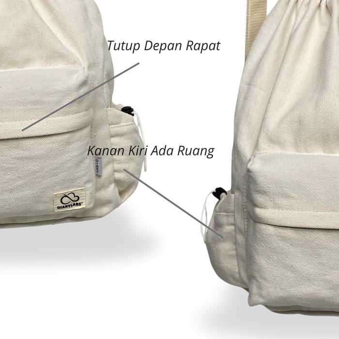 Diarylabs Ransel Serut Kanvas Zurobag Dengan Tutup Depan Rapat Dan R Di Kanan Kiri Wanita Pria - Broken White