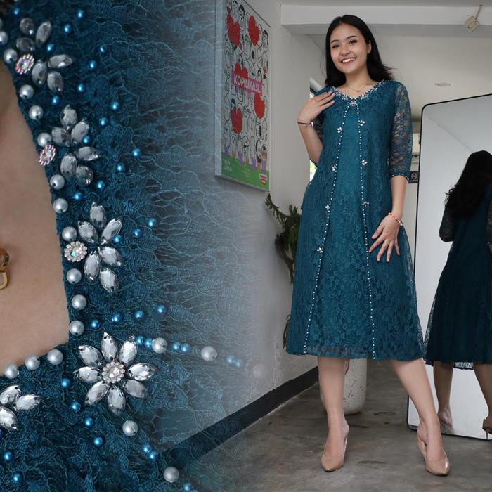 Terbaru Dress Gabriel Brukat Premium Mix Payet Modern Dress Wanita Kondangan Natal Pesta Jumbo Ld 130 Dengan Detail Paye