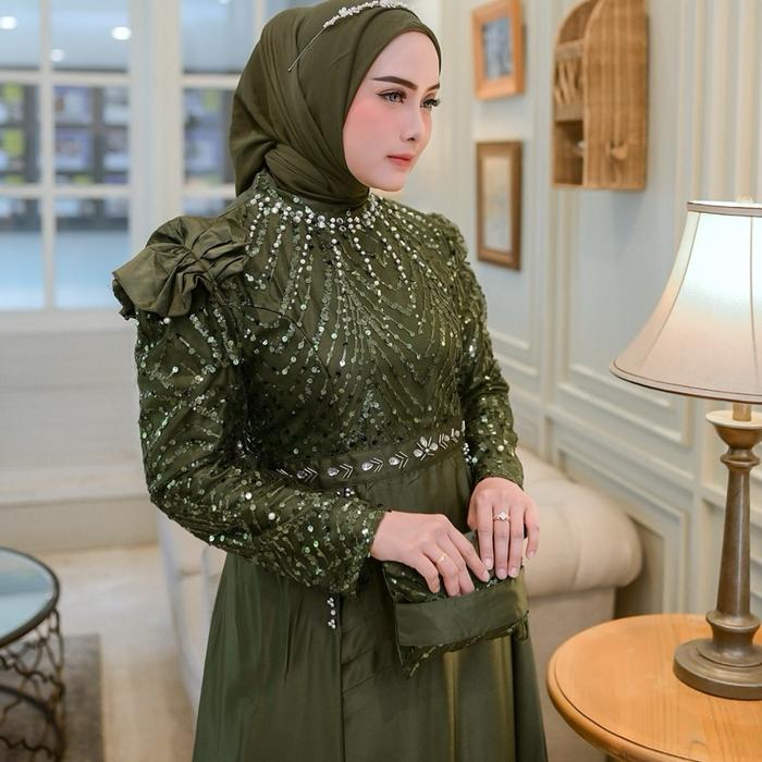 Kemilau Official - Gaun Nadira Vol 2 All Size Ld 108 Cm Dress Busana Muslim Kondangan Pesta Brukat - Taro