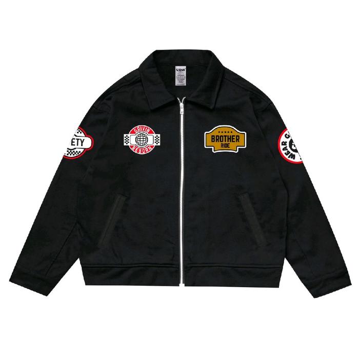 Grivin Work Jacket Minority Jaket Hitam Casual Bordir Pria Zipper Basic Unisex Cowok Bahan Drill
