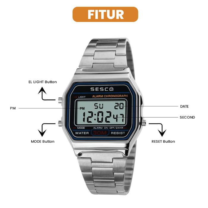 SESCO 1220 Jam Tangan wanita water resistant Cewek Digital Anti Air Original Dengan Tali rantai