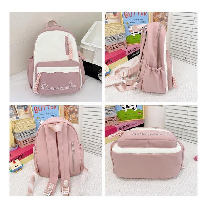 Tas Sekolah Kecil Korea Siswa Lucu Tas Ransel Mini Wanita Tas Ransel Serut Import Fashion Backpack - Merah Muda
