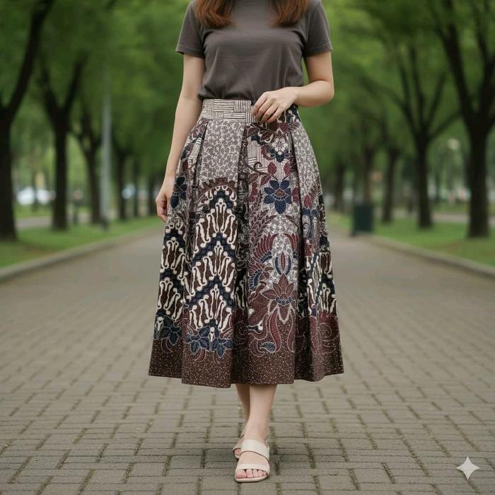 Skirt Batik/// Rok Batik Modern Panjang 7/8 Nyaman Dilapisi Tricot Modern Premium Kekiniannya - Parang Krem
