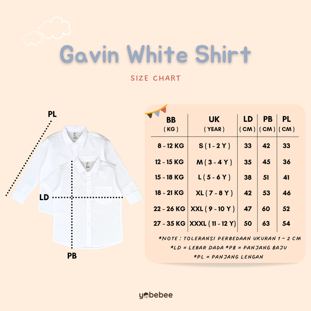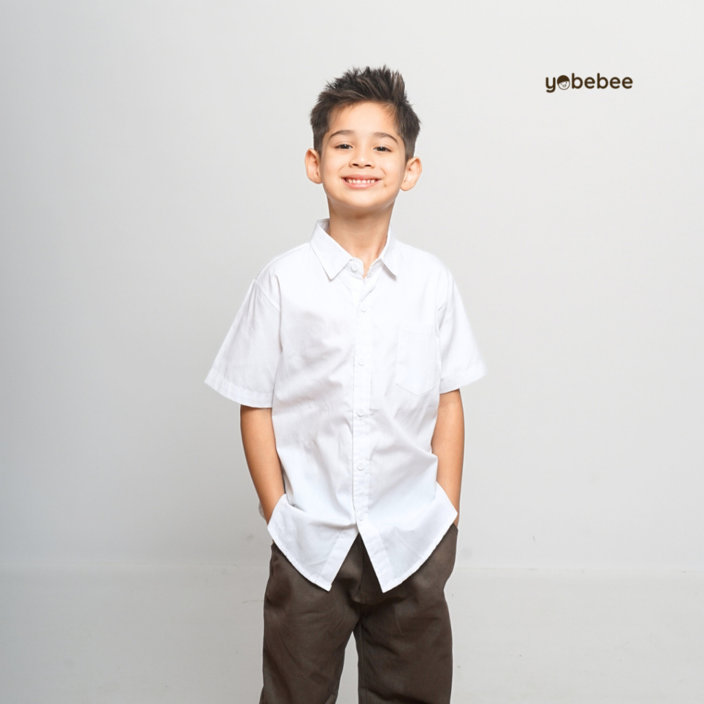 YOBEBEE GAVIN WHITE SHIRT ANAK LAKI LAKI USIA 8 9 10 11 12 TAHUN KEMEJA PUTIH BERSIH ANAK COWOK