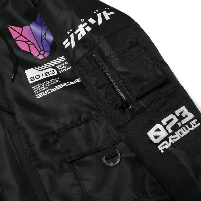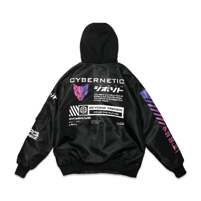 Skyblue.Co Jacket Bomber Topi Cybernetic Original - Jacket Motor - Jacket Sunmori - Pria Wanita - Hitam, M