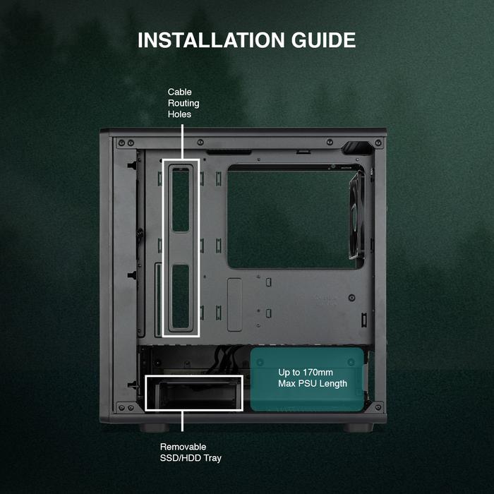 Tecware Timber M Black White Pc Casing Komputer Micro-Atx Free 4X Fan Tempered Glass Resmi Case Gaming - Hitam