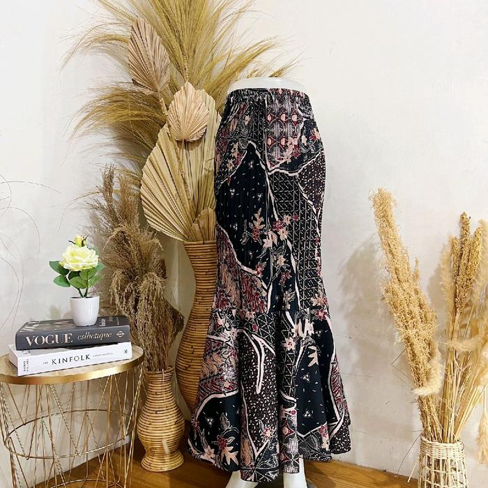 Rok Batik Duyung Plisket Asta Hitam All Size S - Jumbo / Rok Duyung Bawahan Kebaya Modern Wanita - Asta Hitam, All Siz