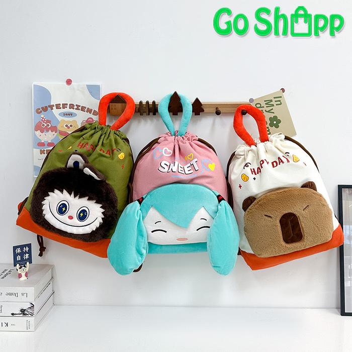Tas Ransel Serut Multifungsi Unisex Karakter Lucu Viral Bahan Kanvas Premium Model Terbaru Kekinian Bk29 - Bk29-Kuromi