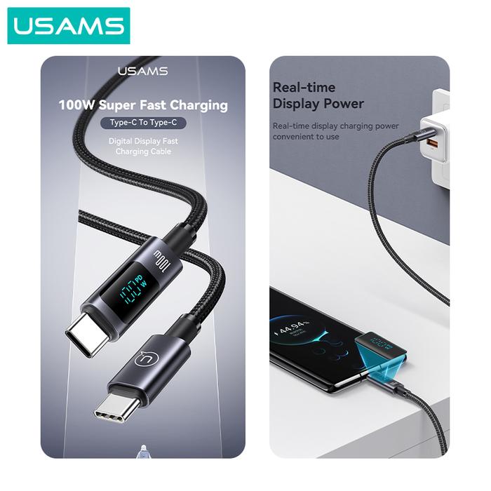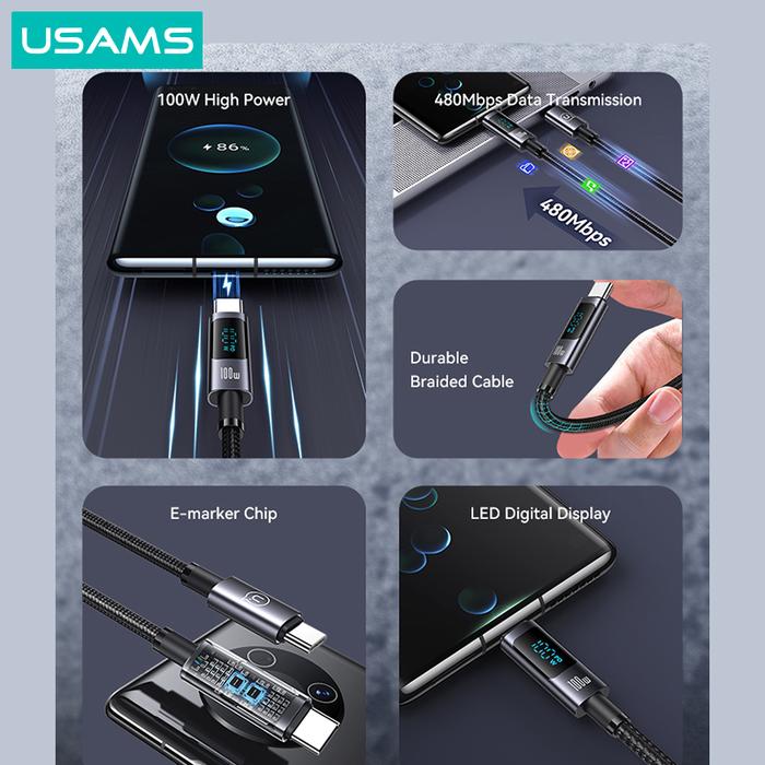 Usams Sf Series Kabel Data Type C To Type C Fast Charging 100W Digital Display - 1.2M