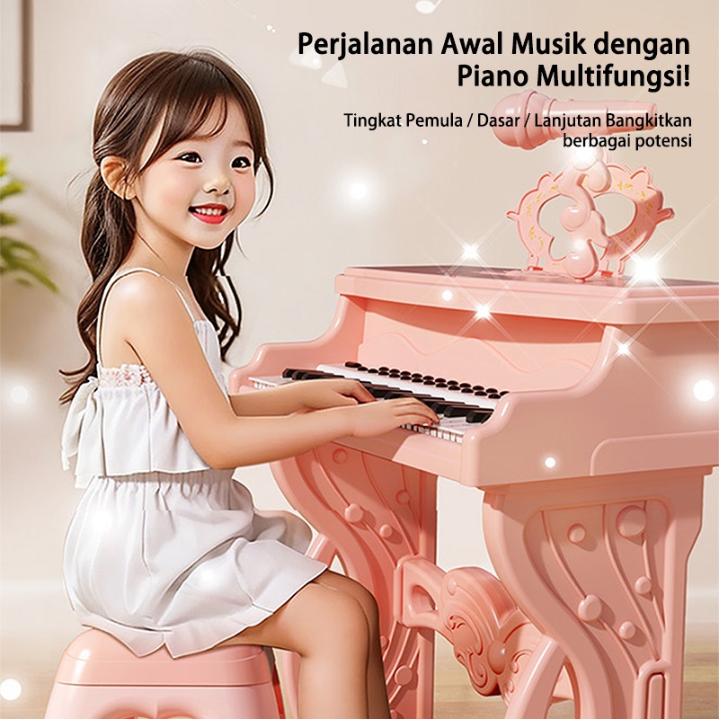 Benston Music - Piano Anak Multifungsi, Keyboard Elektronik 37 Tuts Dengan Mikrofon, Mainan Edukatif Populer Untuk Bayi,