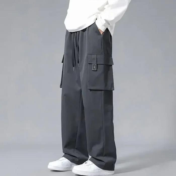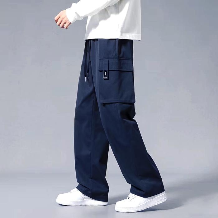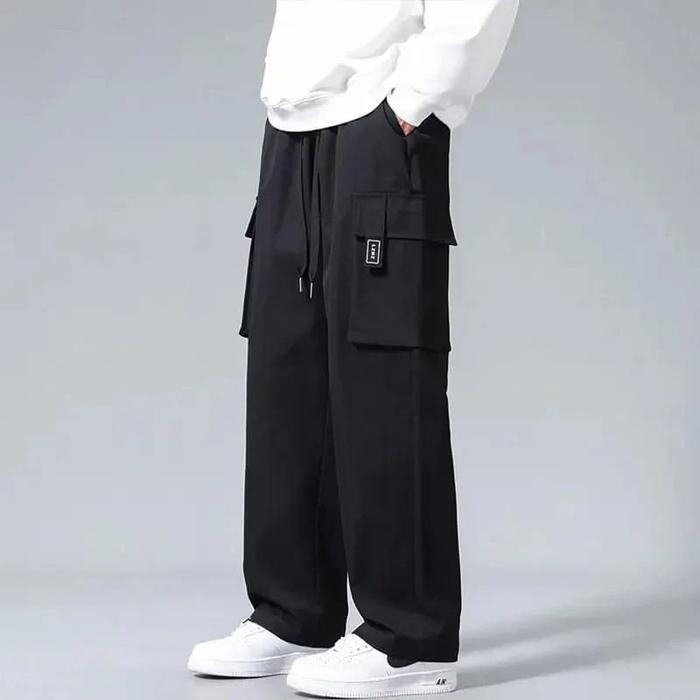 Celana Panjang Cargo Pria Loose Pants Black Abu Navy Overrsize Cowok Keren Nyaman Sport Baggy Pants - Black, S 28-29