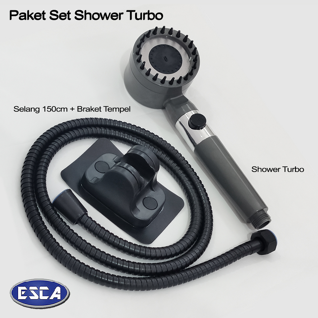 Paket Shower Turbo 4 Mode Kamar Mandi Braket Tempel Selang 150cm Tekanan Air Besar