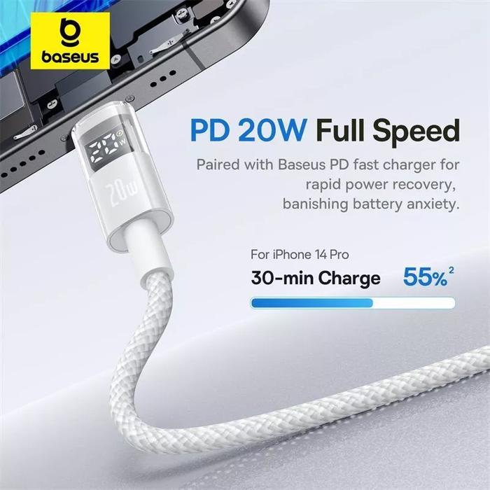 Baseus Cable Data Display Type-C To Lighting Ip 20W Fast Charging Data Cable 1M - Putih