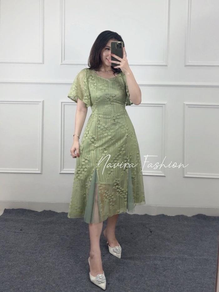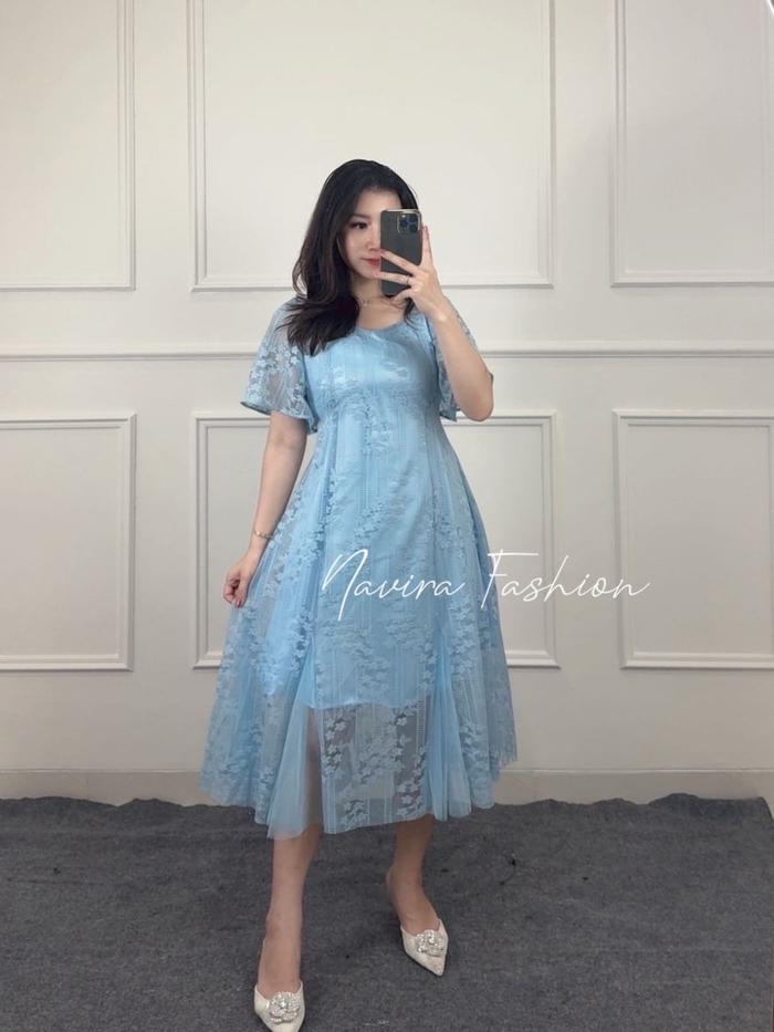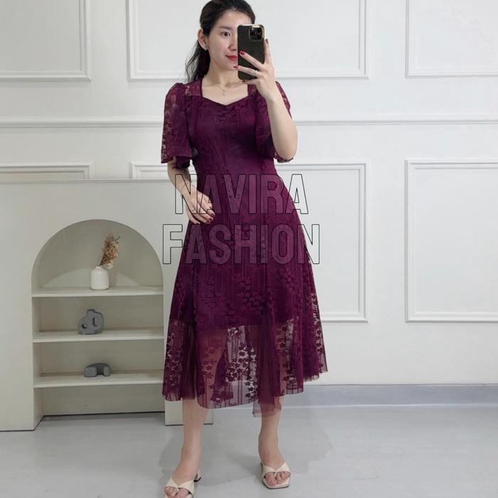 Navira Fashion - Tiara Dress - Dress Brokat - Dress Pesta - Dress Kondangan - Dress Natal - Mahogany, Xl