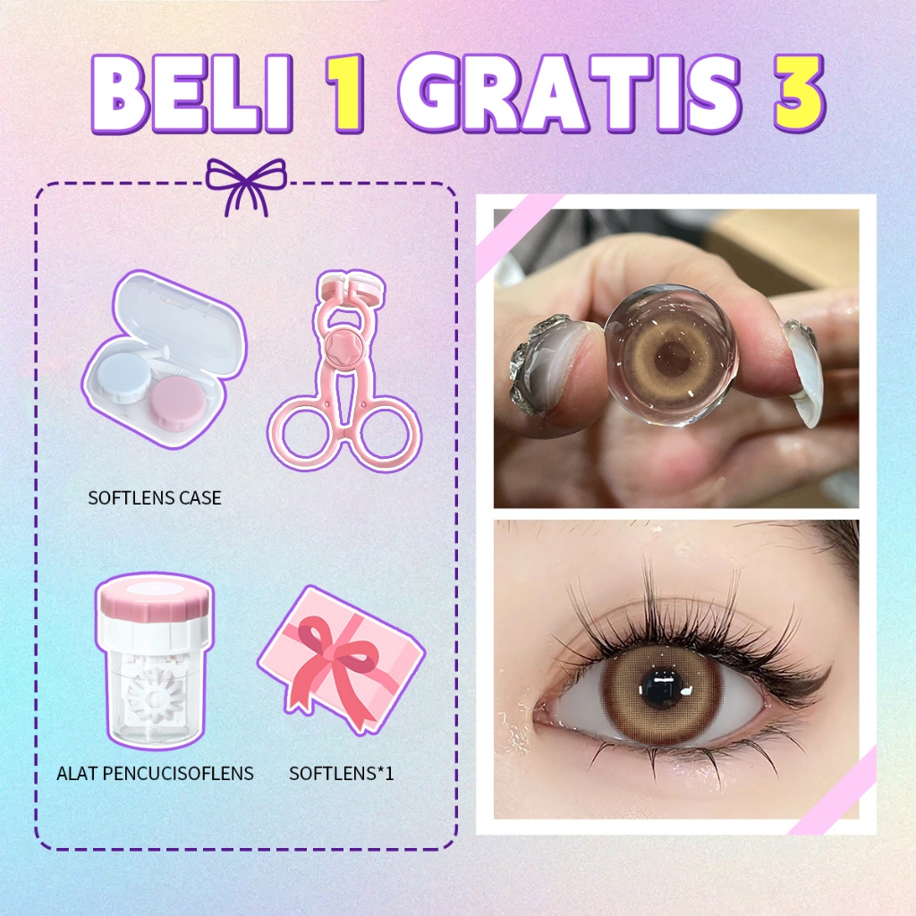 UYAAI【】4 Item Paket kombinasi (1 Softlens + Air Pencuci Softlens 60ml + Alat Cuci Softlens + Tempat Lensa)