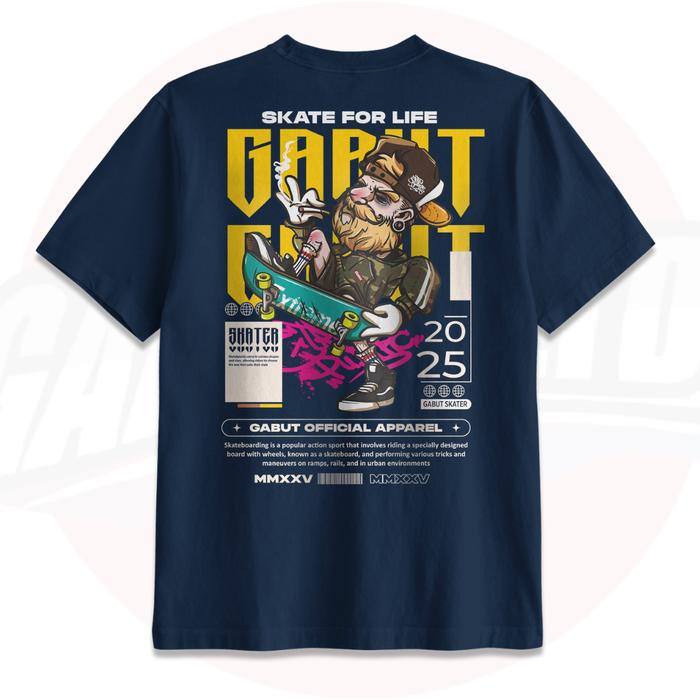 Gabut - Paket Bundling 3Pcs Baju Kaos Distro Unisex Motif Jurassic Skate, Hts Putih, Skate For Life Navy Bahan Cotton