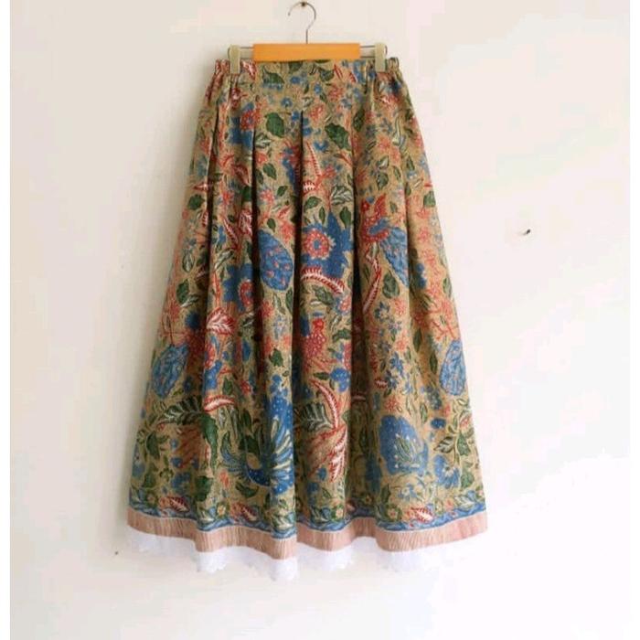 Rok Batik 3Negeri Coklat Muda Tanpa Furing - Allsize Fit Xl, Panjang Hijab 92 Cm