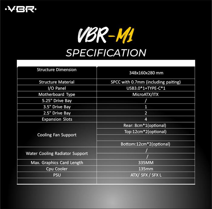 Vbr M1 Black Compact Matx High Performance Gaming Pc Case - Black