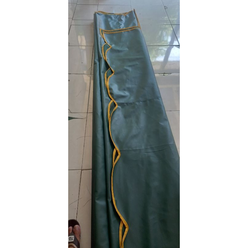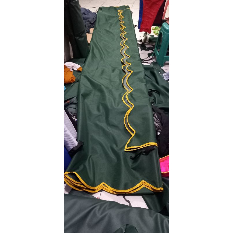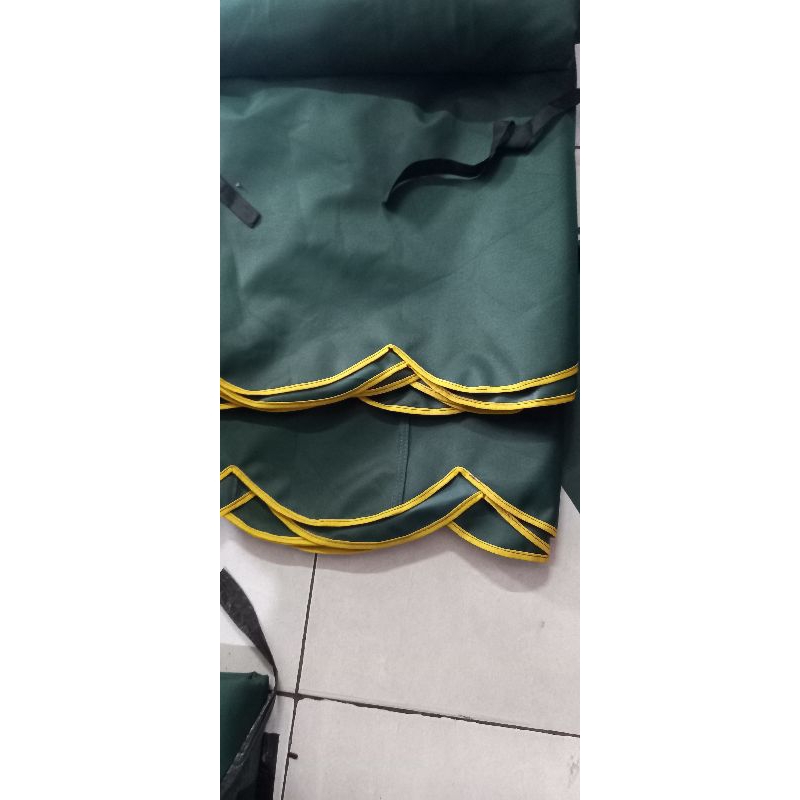 terpal terop miring 6 × 9 + rumbai 35 cm + tali iket ke besi