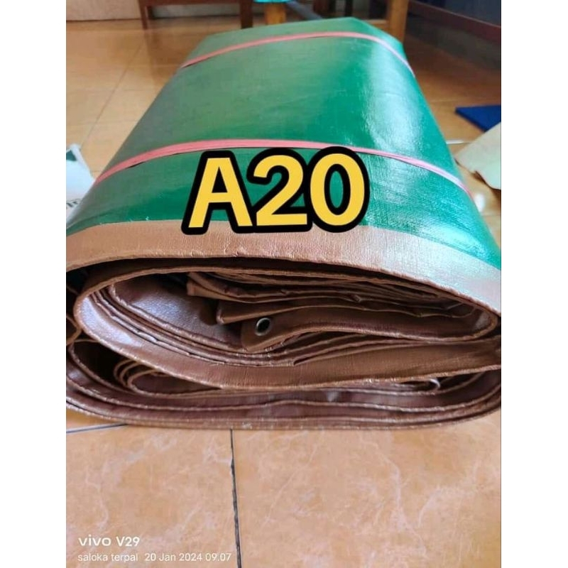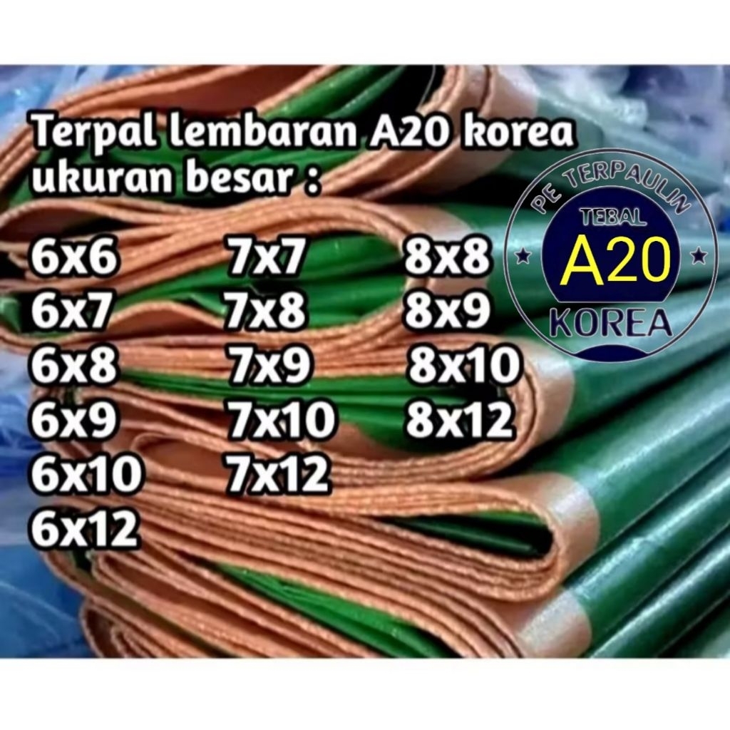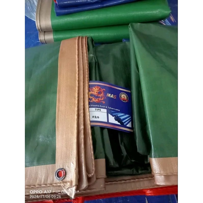 TERPAL A20 SUPER + UV WARNA HIJAU GOLD EXTRA TEBEL UKURAN LENGKAP HARGA TERMURAH 6x6 3x9 3x10 3x11 3x12 4x10 5x10 6x10 5