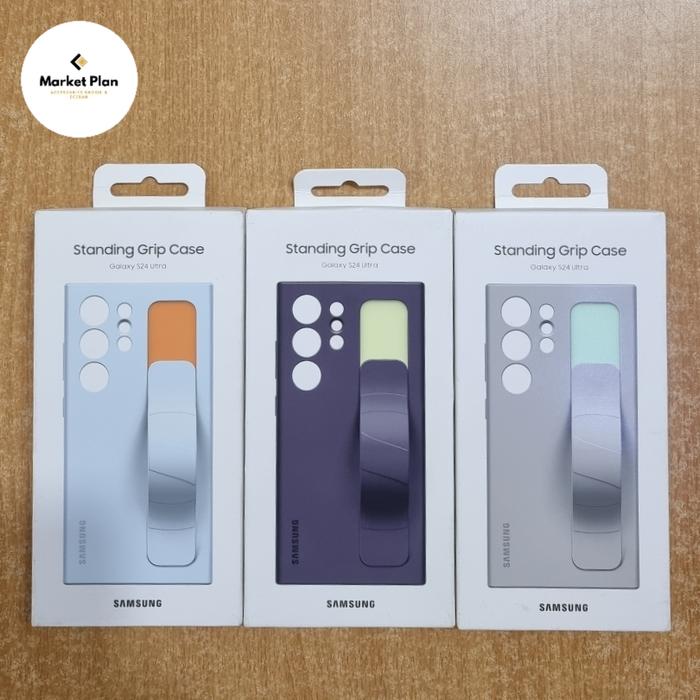 Samsung Casing Galaxy S24 Ultra Standing Grip Garansi Resmi Biru Pelindung Lembut Tangan Mudah Dibawa Bahan Silikon Poly